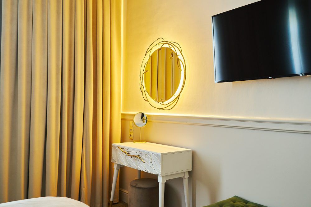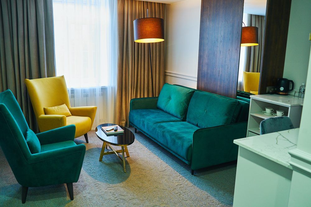Воплощение элегантности и функциональности. Две комнаты с двумя санузлами и просторной гардеробной гарантируют непревзойденный комфорт и уединение. Дизайн номера сочетает в себе спокойные природные оттенки с дерзкими акцентами, создавая эклектичное пространство. Этот люкс идеален как для семейного отдыха, так и для создания незабываемой атмосферы романтического вечера. Также из окон открывается вид на центральную улицу города.